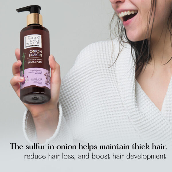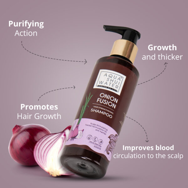 • Nourishing Onion Fusion Formula: The Aqua Shui Hair Strengthening Shampoo is formulated with a unique onion fusion that harnesses the natural benefits of onion extract. Onions are rich in sulfur, which is essential for the production of keratin, a key protein in hair structure. This infusion helps strengthen hair follicles, potentially reducing hair fall while promoting healthier, shinier hair.