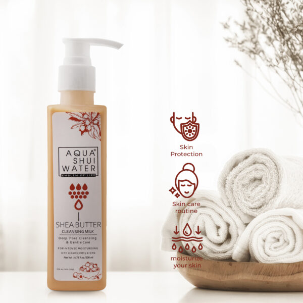 Aqua Shui Water Shea Butter Cleansing Milk is a skincare product designed to cleanse the skin while providing moisture and nourishment. Here’s a detailed description of Shea Butter Cleansing Milk:
