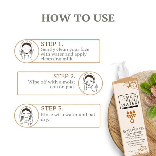 Aqua Shjui Water Shea Butter Cleansing Milk serves a dual purpose. It effectively cleanses the skin, removing makeup and impurities, while simultaneously providing hydration and moisture. This makes it an ideal choice for those looking to maintain skin cleanliness without over-drying.